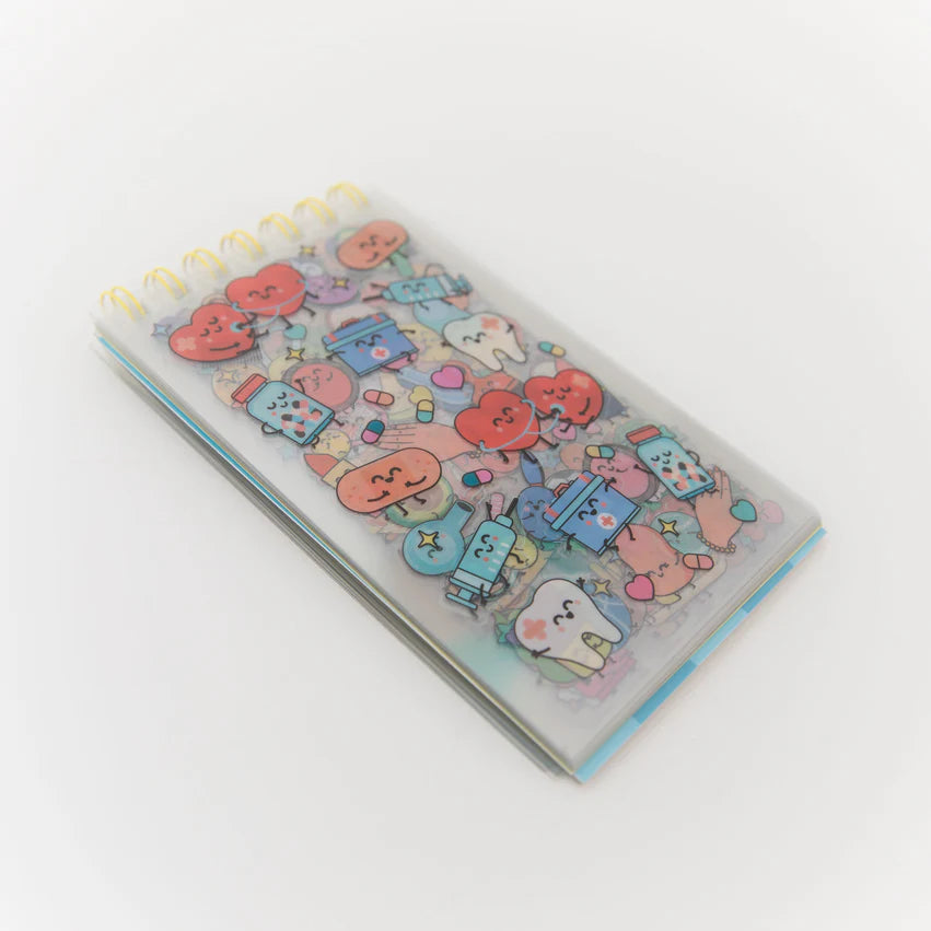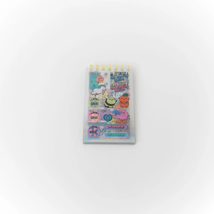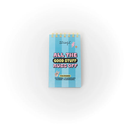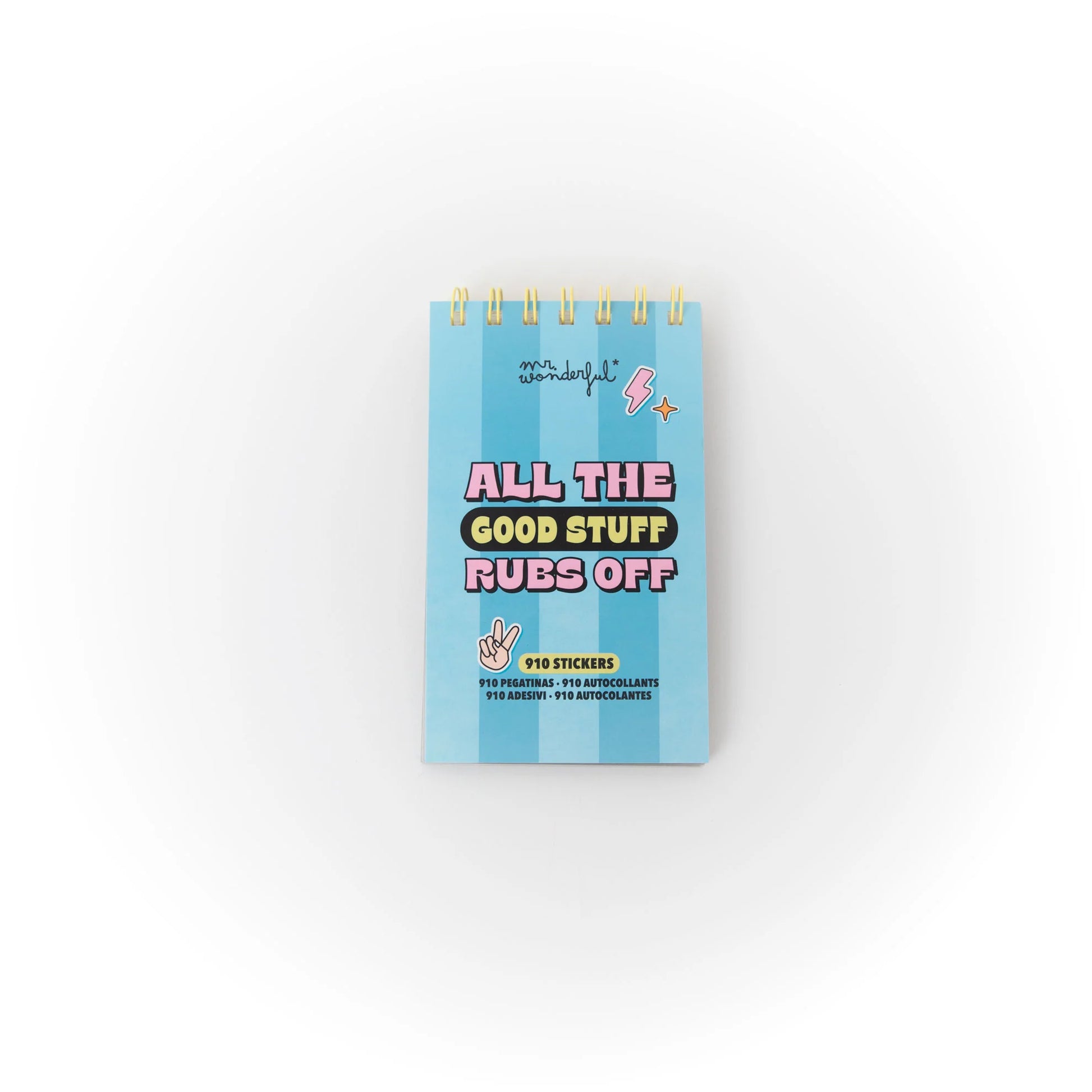 Piccolo quaderno a spirale contenente 910 adesivi, tutti trasparenti.