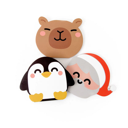 · 3 mini quaderni con forme (Babbo Natale, capibara e pinguino)