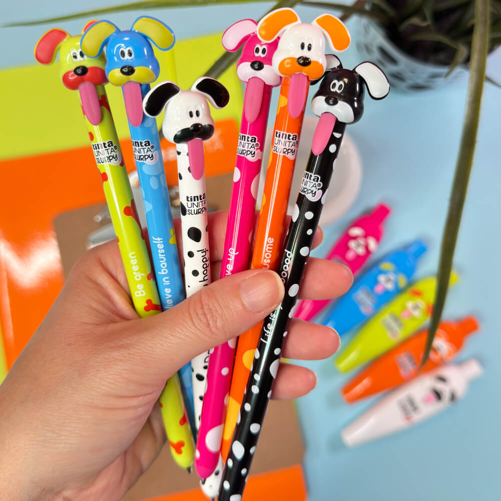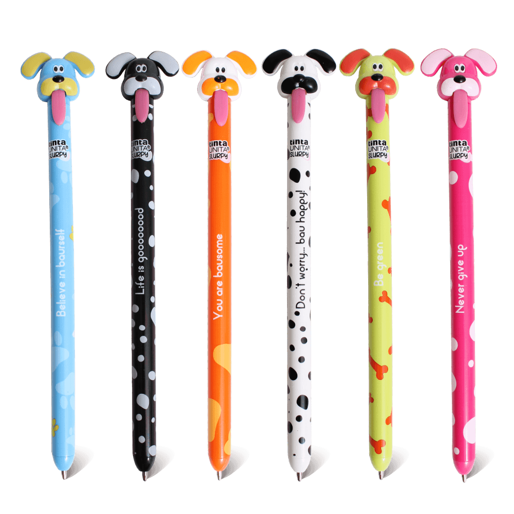Rendi il Natale più giocoso con le penne a scatto Slurpy: la punta esce tirando la lingua, mentre il corpo della penna è decorato con simpatiche frasi motivazionali che regalano un sorriso ad ogni tratto.