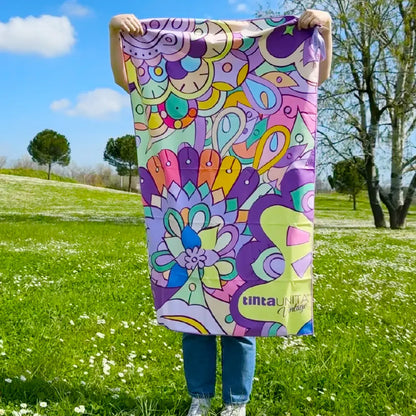 borraccia in tritan da 500ml con telo mare in microfibra dalle dimensioni di 80x130cm